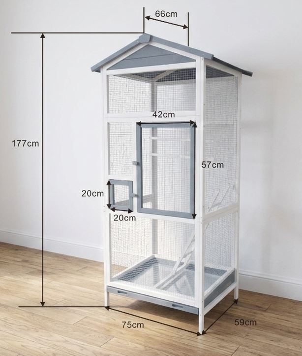 Durch den wetterfesten Anstrich kann die Voliere sowohl im Innenraum als auch im Freien ohne Probleme eingesetzt werden.