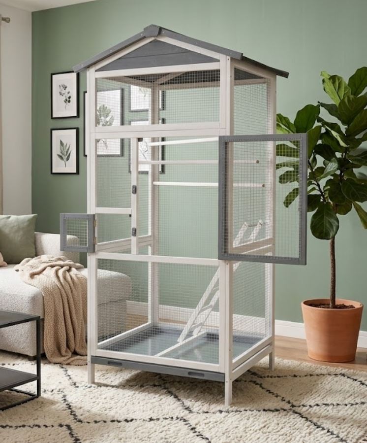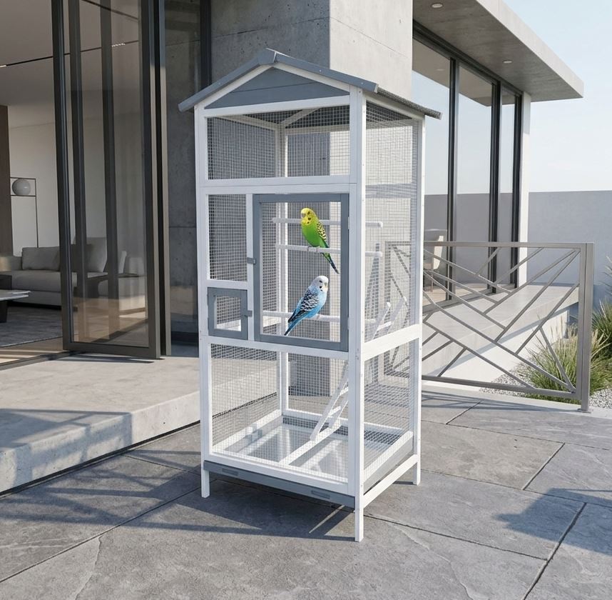 Unsere großzügige Vogelvoliere im skandinavischen Landhausstil bietet nicht nur ein sicheres und komfortables Heim für z. B. Wellensittiche oder Kanarienvögel, sondern ist auch ein echter Blickfang für jeden Wohnbereich.